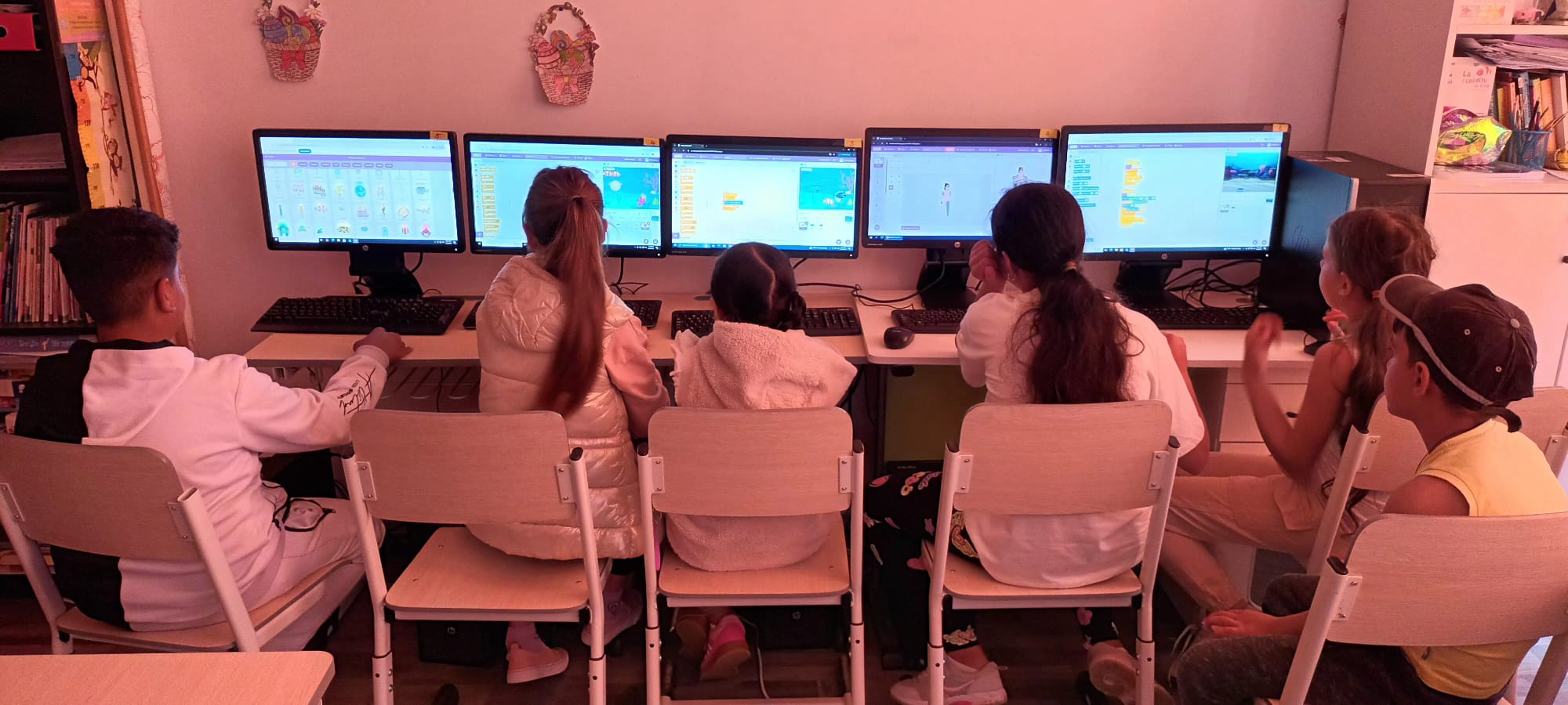 Anul 1: Copiii învață programare cu Scratch, experimentează în Tinkercad, descoperă concepte de inteligență artificială și se familiarizează cu tehnologiile viitorului într-un mod creativ și accesibil.